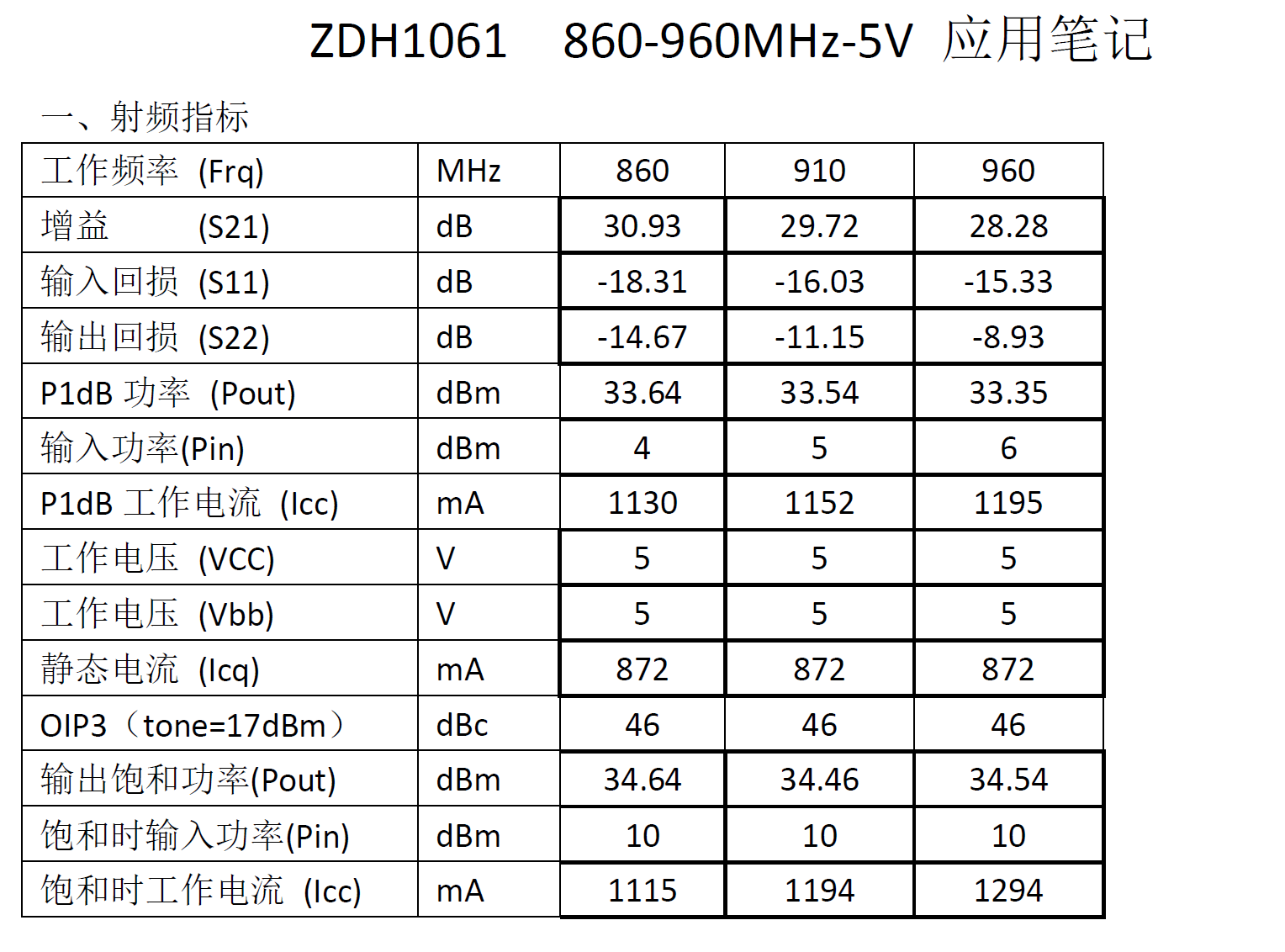 型號: ZDH1061 860-960MHz-5V應用筆記